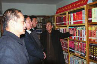 昨日下午捐赠仪式前,高英杰夫妻和省新闻出版局领导共同参观了双英书斋,看到此次捐赠的图书已经录入上架,老人十分开心。